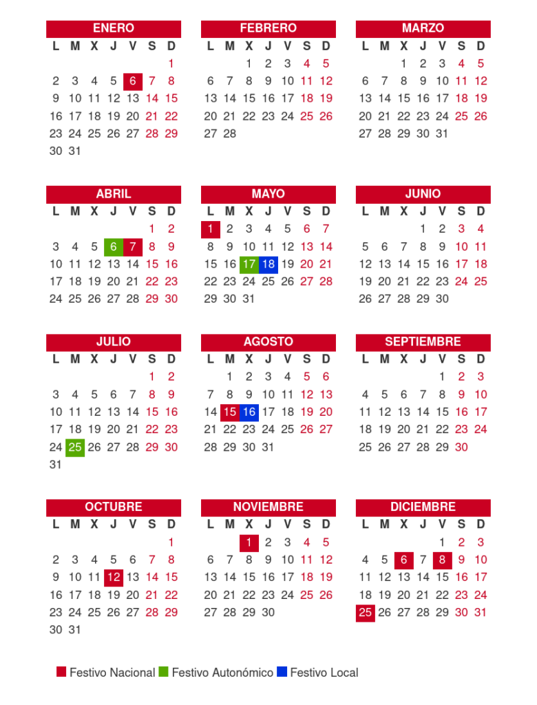 Calendario Laboral 2023 en Santiago de Compostela